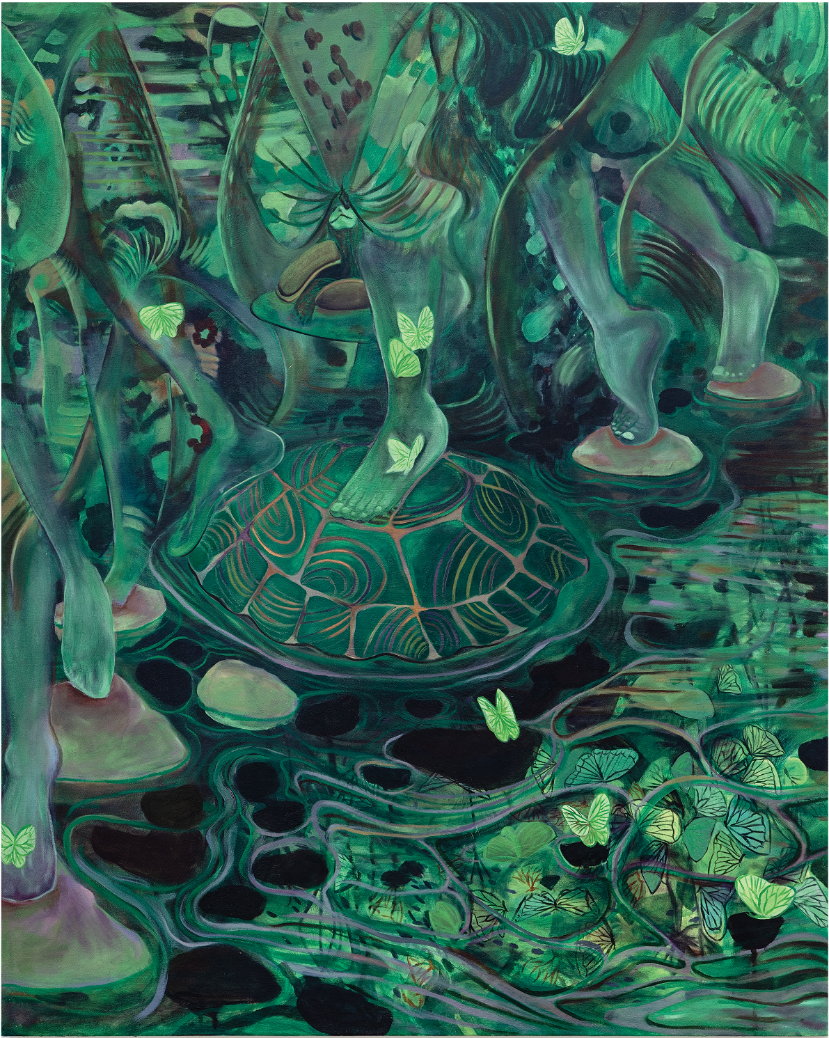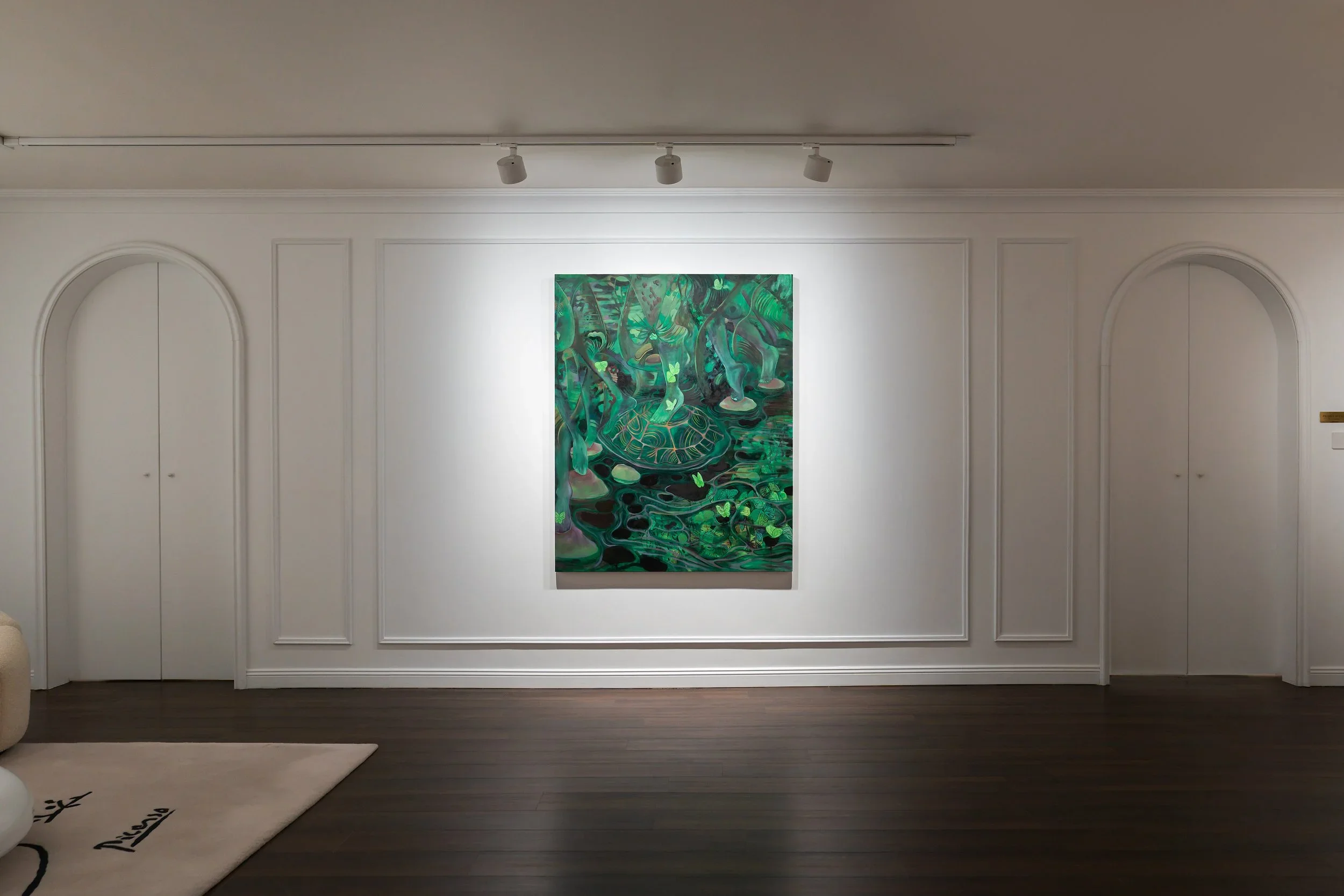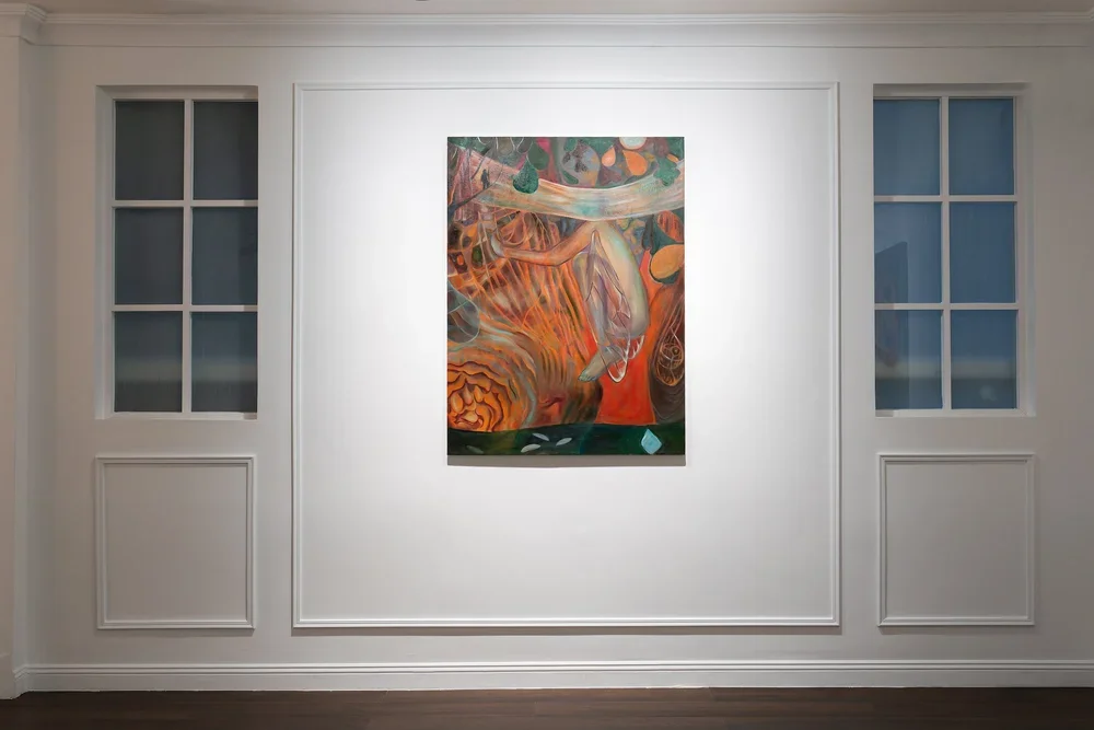 Youjin Yi 尹佑珍 构建了一个感官与潜意识体验交织的内在世界,她称之为“心灵的图书馆”。她的绘画充盈着自然的意象,包括动物、树木和水等,这些形象被呈现为情感存在,而非象征性符号,承载着纯真、真挚与神秘。艺术家的直觉创作模糊了自我与环境的边界,造就了既具有精神性又能沉浸其中的作品,其创作根基在于笔触与情感的结构。