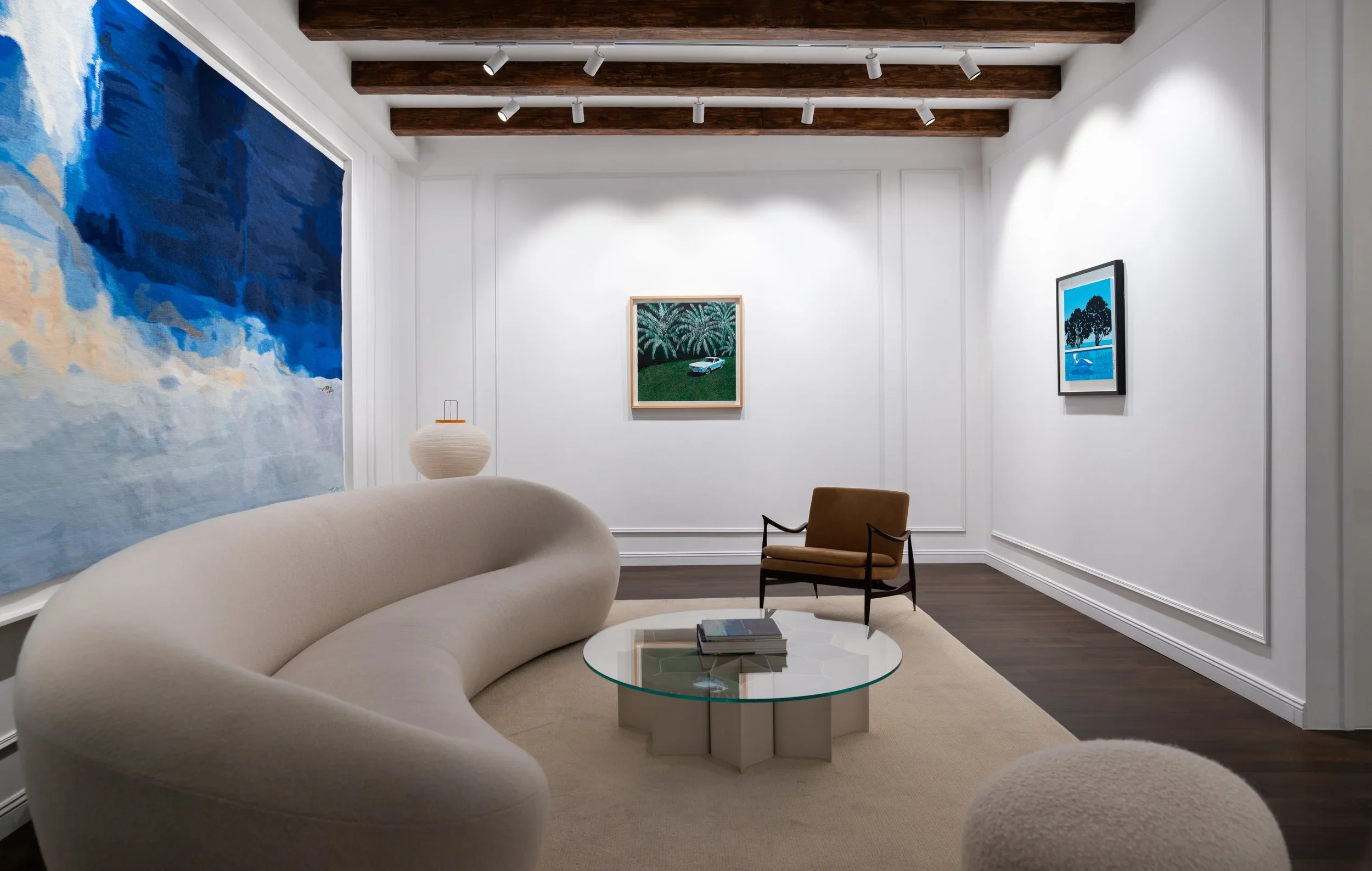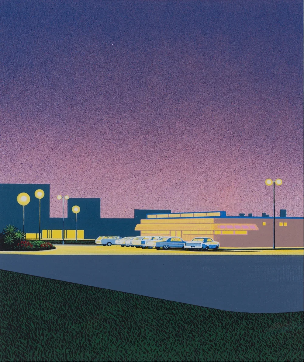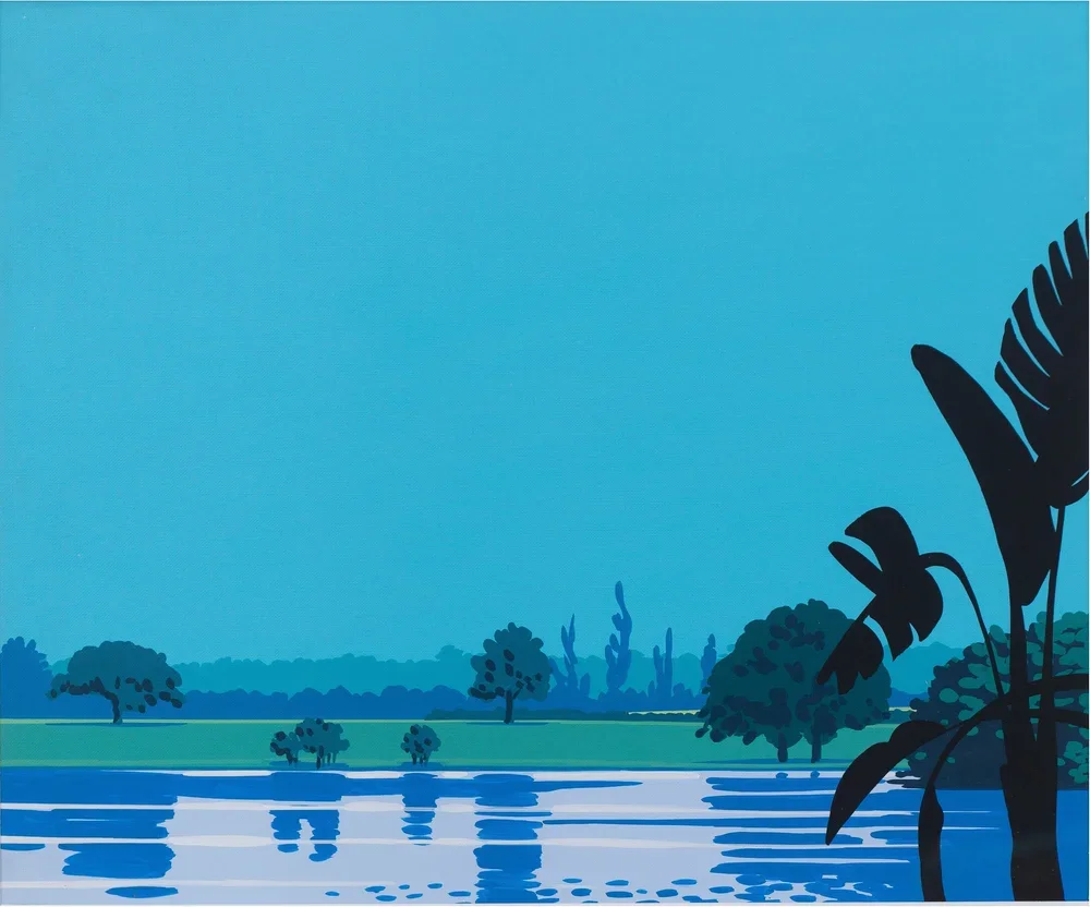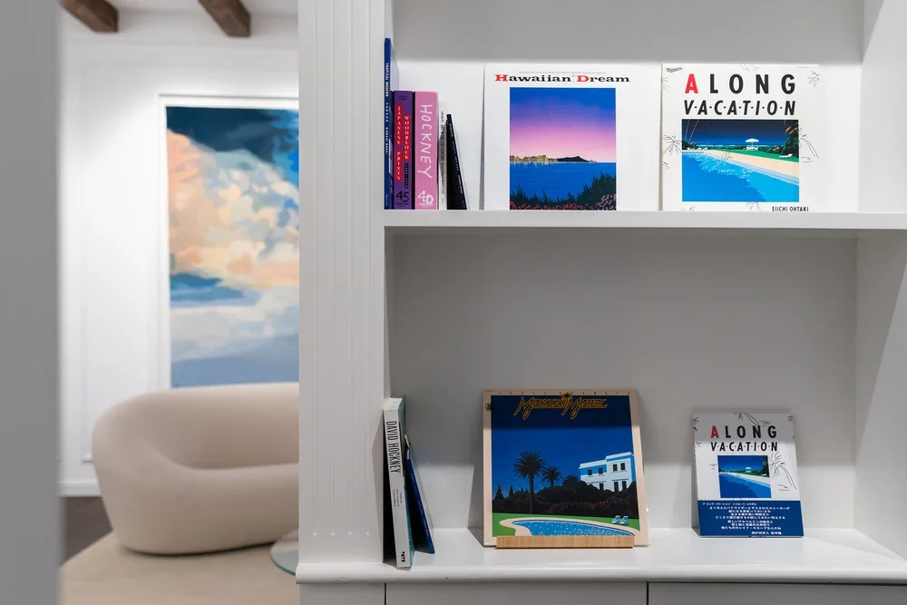 在这一语境下,Hiroshi Nagai 永井博 笔下的明亮天空与宁静海岸捕捉了夏日的细腻感知——一个永恒的瞬间,唤起宁静悠然与恬淡平和,同时展现出在不断变化中蕴含的静穆坚韧。抵达加州时,艺术家发现“棕榈树、蓝天,以及光影中映照的绿意”等景象,这些景象进一步丰富了他对这些地方的情感记忆。观众在观赏作品时,仿佛透过怀旧的镜头,感受那些从未真实存在过的场景。作品让人感到熟悉,又无法归于现实的某处,如同悬浮在记忆与想象之间的朦胧境地。